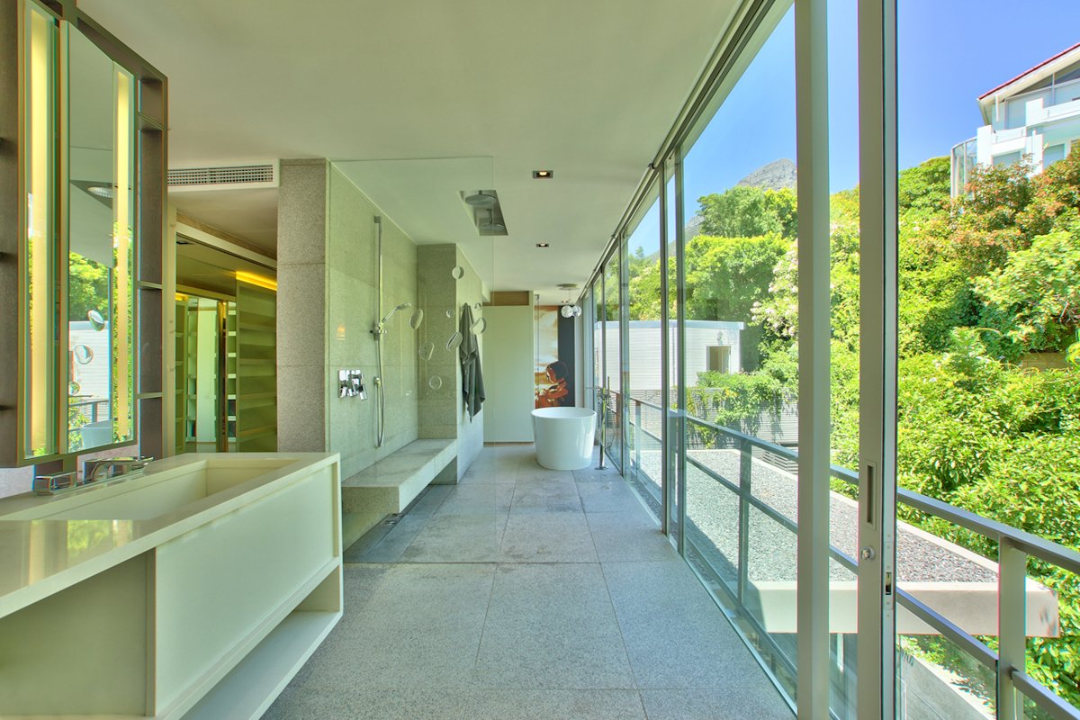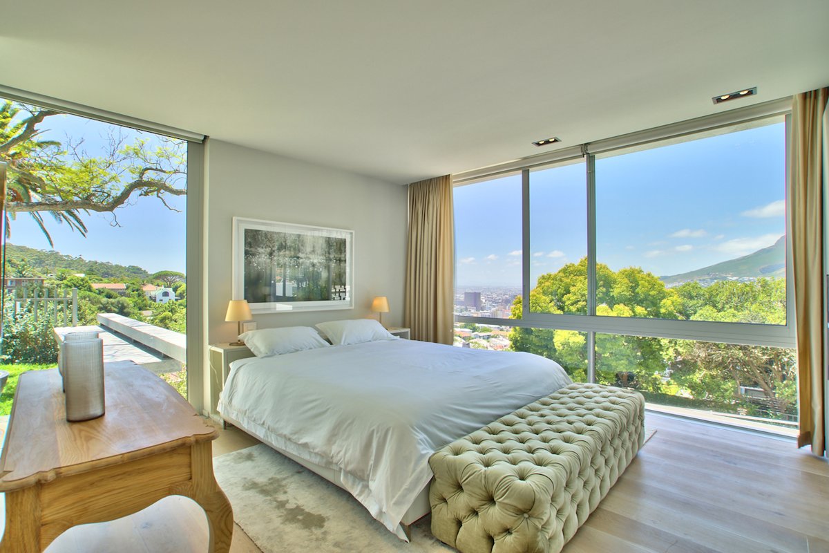 The property on which this house stands enjoys a unique position in a quite cul-de-sac in Tamboerskloof. Bounded on one side by a pedestrian stair and pathway it is this subtle factor that unlocks the potential within the property and the phenomenal vistas experienced from nearly all aspects of the house are revealed.
