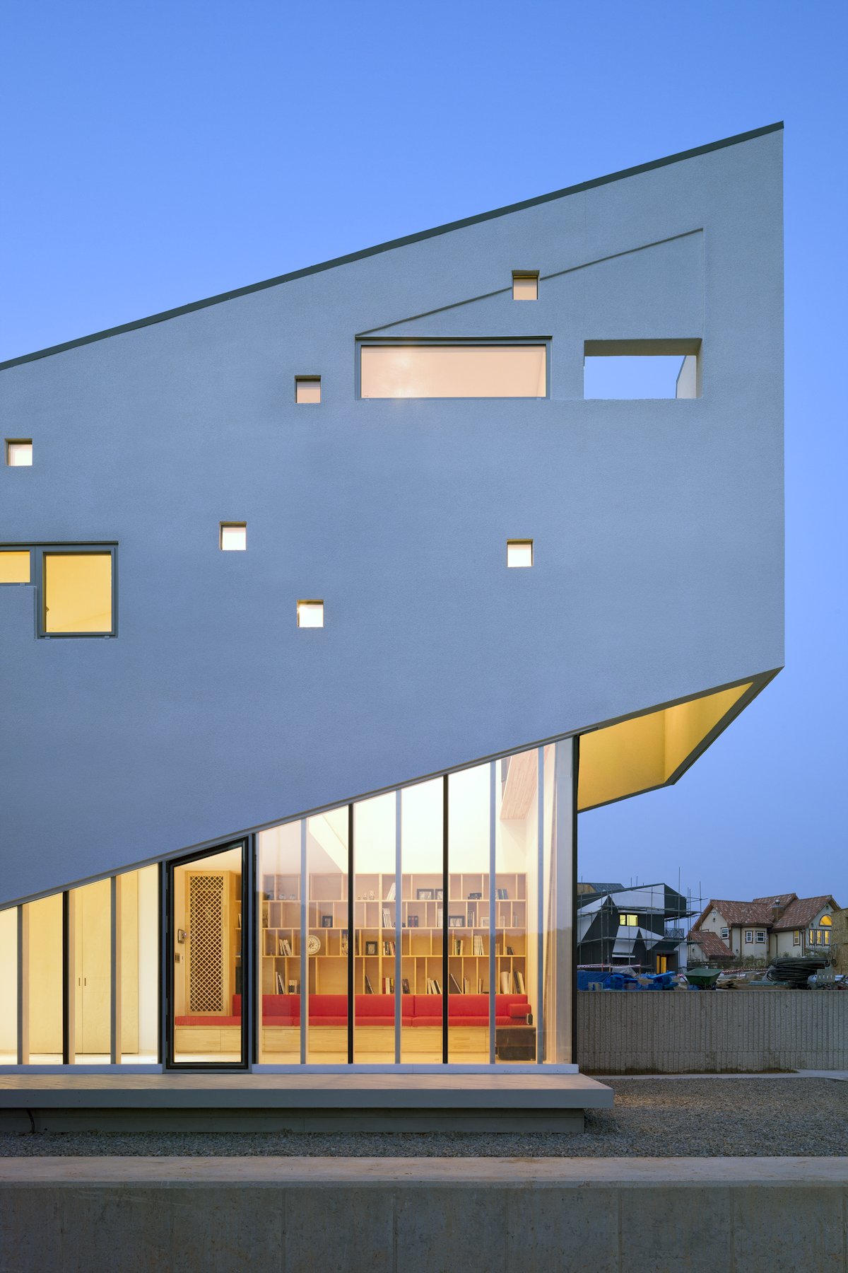 One day, a young and energetic couple paid visit to my office. A rush to the site against the heavy rainstorm almost drowned me. The site was long and thin having a mountain view. I designed the house with the client’s vibrant energy, resulting in a rising form. The interior holds a place like an opera balcony, where they can enjoy movies.