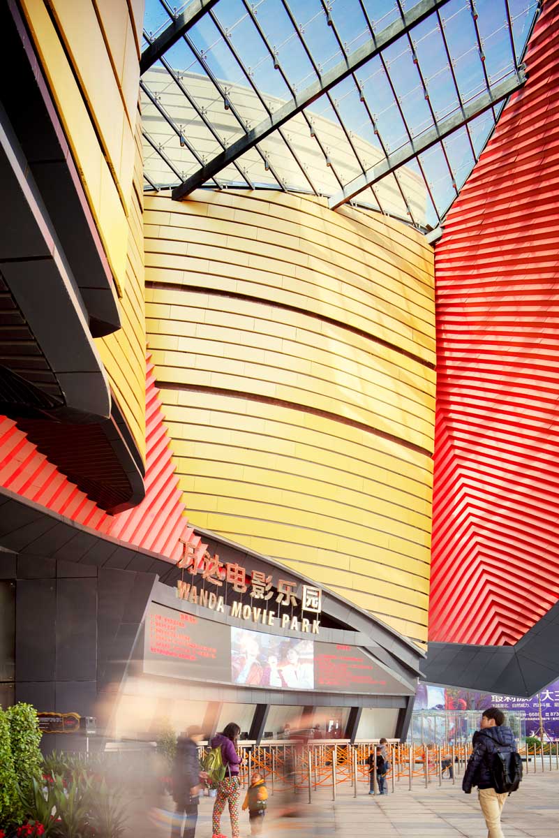Stufish Entertainment Architects have completed the world’s first indoor movie theme park in Wuhan, China. The $690 million Wanda Movie Park, designed for client Dalian Wanda Group, is a multi-dimensional and multi-sensory experience spread over 100,000 square metres. This spectacular building houses six film-related ‘ride’ attractions, including 4D and 5D cinema screens, flight theatre, immersive and interactive live performances and a space theatre.