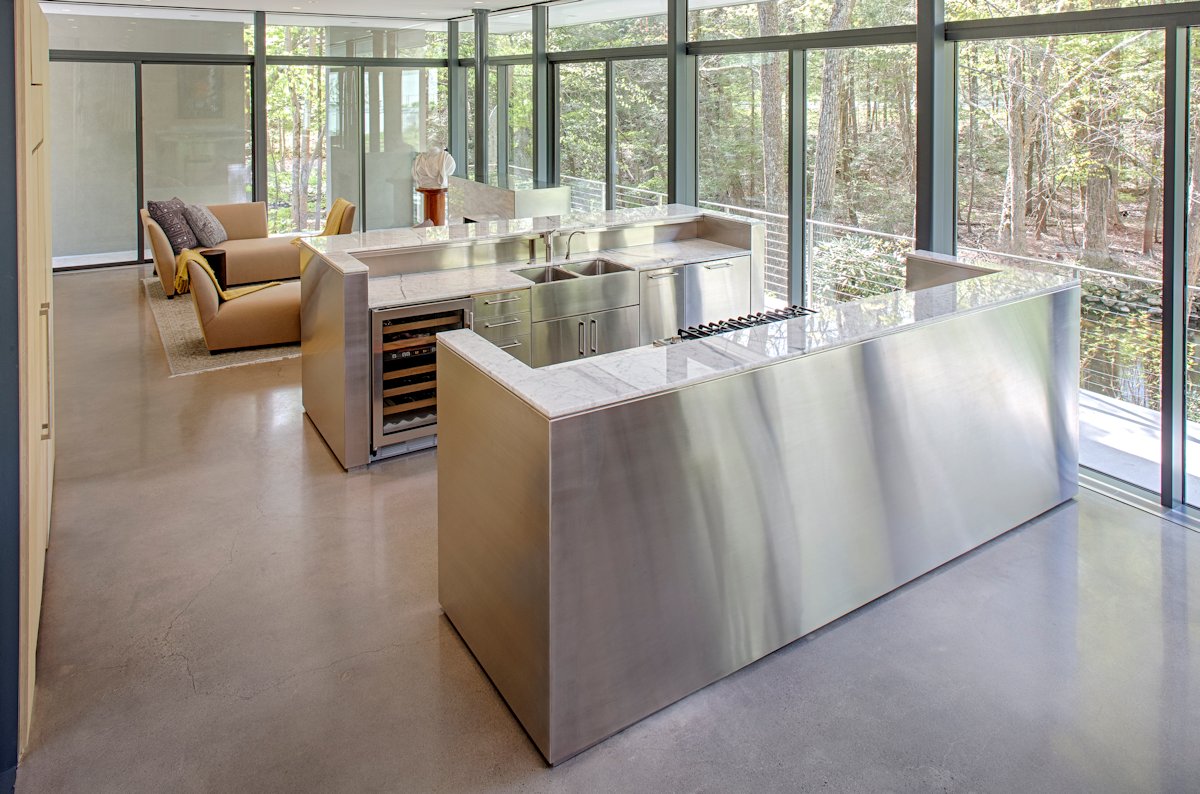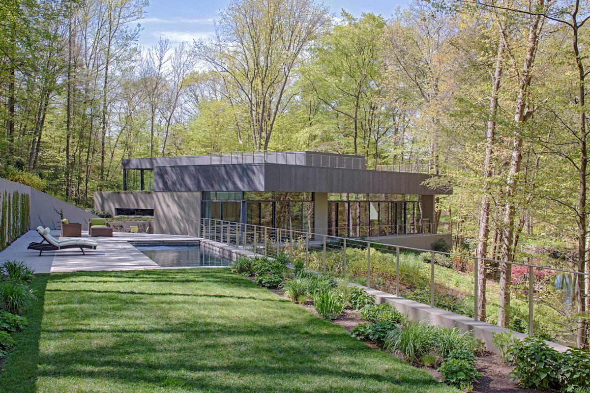 The Weston Residence nestles in a valley adjacent to the Saugatuck River. In plan and section, the elements of the house engage the site in a way that purposefully blurs the transition and distinction between the built and natural environment.