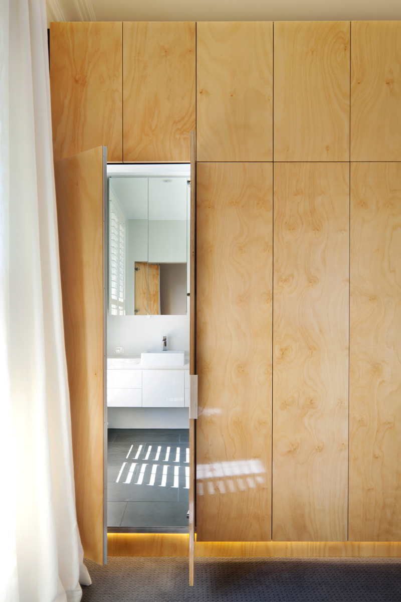 When Nic Owen Architects were designing the renovation of a historic home in Melbourne, they included a wood clad box in the master bedroom. Hidden inside, is a contemporary ensuite bathroom. The box floats within the historic environment, and demonstrates an attempt to respect the past, while offering an updated amentiy.