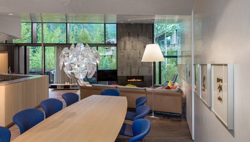 The architecture is designed to be a ‘rustically’ refined backdrop for a sophisticated, indoor/outdoor contemporary lifestyle where all of one’s senses are engaged and enhanced throughout the seasons of Aspen.